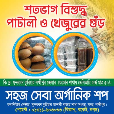 ১০০% অর্গানিক গ্রোসারি, প্রিমিয়াম খেজুর এবং স্বাস্থ্যসম্মত ফুড সাপ্লিমেন্ট — এখন এক ছাদের নিচে। লক্ষ্মীপুর থেকে সারা দেশে।